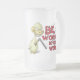 Una taza de cerveza divertida con una imagen del dibujo animado de un pato que sostiene una escopeta con las palabras "sea preocupante, sea muy… muy preocupante" tirada para arriba.