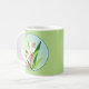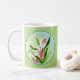 Grandes flores con hojas largas y un colibrí de garganta rubí dentro de un círculo.