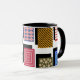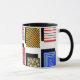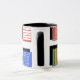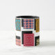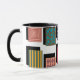 Esta taza tiene un diseño Bauhaus de rectángulos con diseños dentro y sus sombras detrás.