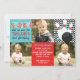 Bolera Retro Chevron 3 invitaciones de cumpleaños con sobres - 3 tragamonedas de fotos Verde azulado Blue Aqua / Rojo / Negro / Blanco