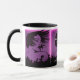La taza de café promocional es una excelente declaración para usted, sus empleados, en su salón, para sus clientes y amigos, para ayudar a promocionar su negocio. Bonito suficiente para poseer, con un efecto arco iris gráfico y toda la información de tu negocio, como dirección web, dirección de correo electrónico, número de teléfono, dirección de la calle, nombre del salón, nombre y título, además de espacio para una declaración personal. Diseñado por HAMbyWhiteGlove alias HAMbWG. gráfico púrpura, negro - con texto negro, mostrado en una taza blanca con el interior negro, mango negro.