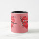 Café publicitario profesional - Barber - HAMbyWhiteGlove - Este diseño tiene un corazón con un gráfico de tijera. El fondo y el texto de este puede ser de cualquier color. Simplemente elija el personalizar dentro de la opción de personalización. Se muestra con fondo rosa sobre una taza blanca y negra, con un corazón rojo brillante, una tijera negra y una fuente blanca y gris. Mostrado con peluquero de palabras.