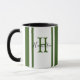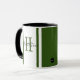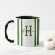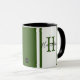 El tazón o taza de café, un primer plano blanco, puede tener cualquier color de fondo, con su inicial. Asegúrese de cambiar el color inicial para que coincida con el fondo. Diseñado por HAMbyWhiteglove alias HAMbWG. mostrado en verde y blanco del bosque.