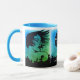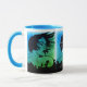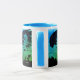 La taza de café promocional es una excelente declaración para usted, sus empleados, en su salón, para sus clientes y amigos, para ayudar a promocionar su negocio. Bonito suficiente para poseer, con un efecto arco iris gráfico y toda la información de tu negocio, como dirección web, dirección de correo electrónico, número de teléfono, dirección de la calle, nombre del salón, nombre y título, además de espacio para una declaración personal. Diseñado por HAMbyWhiteGlove alias HAMbWG. efecto azul y verde, gráfico negro - con texto negro, mostrado en una taza blanca con el interior azul, mango azul.