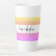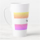 Bolas de café de rayas amarillas, rosas y blancas con tu nombre en negro y inicial en gris. Diseñar HAMbyWhiteGlove alias HAMbWG