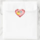 Forma cardíaca y cara amarilla cantando pegatina amorosa.