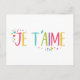 No hay nada como decir que te amo a alguien en su lengua materna. Te amo en francés, Je T'aime, en divertidos colores arcoiris decorados con pequeños corazones y círculos. Los colores se pueden cambiar editando el diseño.
