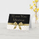 Los lunares del negro y del oro, texto en tarjeta dicen, "te amo Mostest."