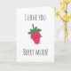 No necesitas una ocasión especial para enviarle esta tarjeta de 'Te amo mucho'. Sin embargo, es una buena tarjeta para un aniversario o el Día de San Valentín. Con una pequeña y adorable frambuesa, esta tarjeta seguramente les hará sonreír.