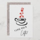 Tarjeta del día de San Valentín con una taza de café con leche con corazones rojos saliendo como vapor. ¡Disponible para descargar e imprimir desde casa!