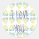Me encanta tu texto en Pegatina. Azules, corazones verdes dibujando sobre el fondo.