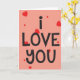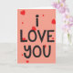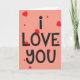 Puedes personalizar esta tarjeta que diseñamos con corazones rojos y círculos y el texto dice Te Amo.