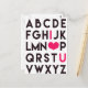 NewParkLane - Tarjeta postal linda, con el alfabeto en tipografía moderna y negra y las letras de 'Te Amo' en rosa intenso con un corazón grande.