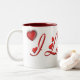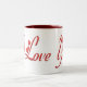 Esta taza hermosa se adorna con los corazones rojos ardientes y la escritura hermosa que indica, "te amo". Llénela del caramelo, del chocolate, o aún de un pequeño oso de peluche para el el día de San Valentín o siempre usted quiere decir, "te amo".