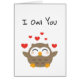 Pequeño ilustracion lindo y feliz de búho con cálidos corazones rojos volando por ahí. Un pájaro gracioso de colores marrones claros y con patas amarillas brillantes. Esta lechuza trae felicidad y amor, y le gusta animarte o enviar los mejores deseos a alguien que quieras. También puede personalizar de los antecedentes de sus necesidades.