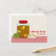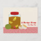Una postal de la receta con el ilustracion de un dispensador con tapa roja y espiga rellena de té dulce y cuñas de limón. El tomate verde se sienta a la izquierda del dispensador, 2 galletas a la derecha. Personaliza con tu nombre.