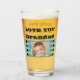 Idea de regalo de vidrio de cerveza para el abuelo. Negro y azul, con una foto del nieto en el frente y otra en la espalda. Te queremos.