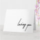 Comparte tus emociones más sentidas con esta tarjeta de bienvenida ‘Loving You’. Perfecto para cualquier ocasión, esta tarjeta es una hermosa manera de expresar amor y aprecio por alguien especial. Ya sea para una pareja romántica, un amigo cercano o una familia, esta tarjeta le agrega un toque personal y conmovedor a su mensaje.