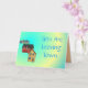 Tarjeta de despedida colorida y brillante con casas y un arcoíris, texto que dice "Estás dejando la ciudad" en la página siguiente "Te extrañaremos" " Mejores deseos de todos nosotros" en la parte trasera "Despedida"