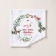 Una hermosa vegetación acuática y una cortina de morera roja enmarcan tu mensaje en este adorable paño de lavado de vacaciones. La etiqueta tiene una tipografía elegante, y hay espacio para personalizar.