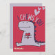 Tarjeta divertida del Día de San Valentín para niños con una ilustración de un T-Rex morado de dibujos animados sosteniendo un corazón rojo con las palabras "Te elijo" regalo ideal para niñas y niños.