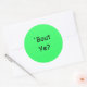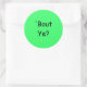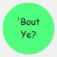 ¿Te molesta? (Irlandés del Norte para: ¿Cómo estás?), Pegatinas redondos con letras negras en fondo verde.