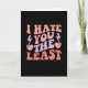 Cute "Te Odio Lo Menos" tarjeta retro. Diseño divertido de texto ondulado rosa y morado. Perfecto para tu pareja, mejor amigo o compañero de trabajo.