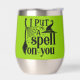 Este clásico diseño de Halloween presenta la espeluznante frase "Te pongo un hechizo" en una letra audaz de inspiración gótica. El blanco y el negro crean un ambiente sobrio, por lo que el diseño es perfecto para la temporada de Halloween. Acompañando el texto hay elementos de bruja icónica, incluyendo un gorra de bruja puntiaguda, un palo de escoba, una telaraña y una araña diminuta, todos dispuestos para crear una composición fascinante. El sutil detalle de los puntos alrededor del texto añade un toque de encanto mágico.