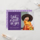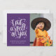 Desee a sus seres queridos una feliz Halloween con nuestra tarjeta de fotos de Halloween "I Put a Spell on You". Este bonito diseño presenta la frase en una escritura con letras a mano, rodeada de estrellas moradas claras en un rico fondo morado oscuro. Personalice la parte delantera con un saludo personalizado, sus nombres y su foto favorita para un toque mágico de temporada. La parte trasera muestra un encantador patrón de estrellas blancas, añadiendo un acabado lúdico. Perfecto para enviar deseos festivos de Halloween a amigos y familiares.