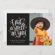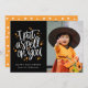 Desee a sus seres queridos una feliz Halloween con nuestra tarjeta de fotos de Halloween "I Put a Spell on You". Este bonito diseño presenta la frase en una escritura brillantemente escrita a mano, rodeada de brillantes estrellas naranjas contra un fondo negro texturizado. Personalice la parte delantera con un saludo personalizado, sus nombres y su foto favorita para un toque mágico de temporada. La parte posterior muestra un patrón de estrella blanca, añadiendo un acabado encantador. Perfecto para enviar deseos festivos de Halloween a amigos y familiares.