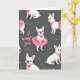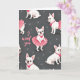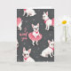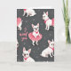Esta linda tarjeta del Día de San Valentín presenta un patrón repetido de Bulldogs franceses blancos sobre un fondo gris carbón oscuro. En el centro, un Frenchie se destaca con un tutú de color rosa chicle y un collar a juego en forma de corazón, posado como un pequeño bailarín. Los perros tienen ojos oscuros y expresivos y líneas de cejas sutiles que les dan una apariencia dulce y ligeramente seria. Algunos de los bulldogs aparecen completamente, mientras que otros están recortados en los bordes, lo que añade interés visual. Suaves formas de corazón grises están esparcidas por todo el fondo para dar un toque romántico suave. En la parte delantera, el mensaje "Te ladro" está escrito en letra cursiva rosa suave que se destaca claramente contra el fondo oscuro. Es una opción encantadora para los amantes de los perros y una forma divertida de compartir afecto con alguien especial en el Día de San