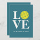 Elegante y a la moda tarjeta plana de bolas de pickleball con letras apiladas que escriben "LOVE" con una bola de pickleball en lugar de la O sobre un fondo de color rico. Mensaje personal: el marcador de posición se puede personalizar para el individuo para el destinatario del grupo o reemplazarlo con su propio sentimiento. Disponible en una selección de colores energéticos. También disponible en versiones de tarjetas plegadas y sin foto - por favor revise la tienda. Perfecto para El día de San Valentín, Día más dulce, aniversario boda o cualquier día!
