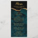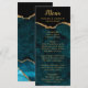 Display your meal selections in style with this elegant wedding menu featuring a teal blue agate marble design accented with gold details. The geode-inspired background creates a sophisticated look, perfect for fall and winter weddings, formal celebrations, or evening events. Designed to coordinate with your wedding stationery suite, this menu is ideal for presenting courses clearly while adding a luxurious touch to your table setting. The clean typography ensures readability while complementing the agate texture. Easily personalize all text to suit your menu and event details, making it a beautiful choice not only for weddings but also for engagement parties, anniversaries, and other formal occasions.
