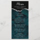 Display your meal selections in style with this elegant wedding menu featuring a teal blue agate marble design accented with silver details. The geode-inspired background creates a sophisticated look, perfect for fall and winter weddings, formal celebrations, or evening events. Designed to coordinate with your wedding stationery suite, this menu is ideal for presenting courses clearly while adding a luxurious touch to your table setting. The clean typography ensures readability while complementing the agate texture. Easily personalize all text to suit your menu and event details, making it a beautiful choice not only for weddings but also for engagement parties, anniversaries, and other formal occasions.