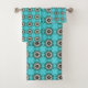 teal towels featuring a black and white geometric