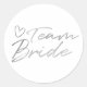 Un pegatina muy bonito con un guión de Relieve metalizado falso plateado para la novia del equipo. Esto será ideal para duchas de novias, fiestas de gallinas, fiestas de soltera y otros eventos bodas. Este diseño está disponible en otros títulos.