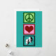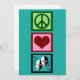 Tarjeta hermosa de teatro o club de drama con un bonito signo de paz, corazón y las máscaras felices y tristes de la actuación. Tarjetas de Paz Amor Teatro.