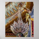 Celestial Bloom captura el impresionante esplendor de la Sala de Música del Royal Pavilion, donde el Este se encuentra con el Oeste en una deslumbrante muestra de opulencia Regency. Esta obra de arte exhibe una exquisita lámpara de araña inspirada en el loto, suspendida de un techo ricamente adornado, rodeada de figuras esculpidas, motivos dorados y tonalidades vibrantes de azul, oro y cardenales. Cada detalle (desde los cristales en cascada hasta la figura alada envuelta en túnicas flotantes) evoca la elegancia teatral del palacio costero de Jorge IV. Perfecto para los amantes de los interiores históricos, el diseño maximalista y la fantasía arquitectónica, esta impresión le aporta un toque de lo más extravagante de Brighton en su casa.