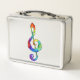 Polígono, arcoiris, brillante clave musical sobre fondo blanco. Tatuaje de polígono. Treble clef