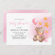 Invite a la familia y amigos a celebrar la llegada futura de su bella bebé recién nacida. Estas lindas invitaciones a la ducha de bebé tienen un fondo blanco, un oso acuarela, un globo rosa, estrellas doradas y una botella de bebés, además de una moderna plantilla de ducha para bebés que es fácil de personalizar.