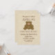 Una adorable invitación de fiesta de cumpleaños para bebés de oso de peluche pardo. El fondo es un patrón de puntos de polka blanco y beige claro.