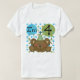 Camiseta del cuarto cumpleaños de Teddy Bear con un adorable oso marrón vestido con un gorra fiesta, muchos puntos de polka azules y verdes, y globos con texto que dice "¡Tengo 4 años!"