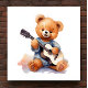 Encantador oso de peluche tocando guitarra zurda (también hay una versión a mano derecha disponible). Decoración de vivero cuadrado de 12" x 12". Haría un gran regalo para la ducha de bebé. Gráfico asistido por IA adquirido con licencia comercial. Material gráfico: MokoDE