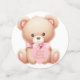 Crea un cuadro especial para tu próxima ducha de bebé, o evento especial. Delante se ve un lindo oso de peluche con texto personalizado. La parte trasera tiene corazones rosados. Utilice la plantilla para personalizar.