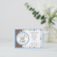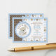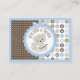 Oso de peluche dulce y caprichoso leyendo un libro con un arco azul y una etiqueta colgante de medallón de aspecto 3D y cinta de rayas y doblar sobre las huellas de polka con la huella de pata de oso, trae un inserto de la tarjeta de libro para la ducha de bebé.