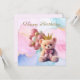 Un lindo oso de peluche princesa con una reverencia rosa y una corona dorada Feliz cumpleaños
