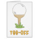 Se sienta una pelota de golf, esperando que la golpeen con un titiritero. "Tee-Off" en amarillo debajo.