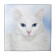 El azul de pelo largo observó la baldosa cerámica del gato de la foto blanca de la cara