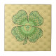 Este trébol clásico de cuatro hojas sobrepone un diseño del círculo concéntrico que ofrece a capas de Celtic teje en sombras múltiples del verde con un pedazo del naranja para el acento. Tres diversos colores de fondo se han proporcionado, la versión amarilla mostrada actualmente.