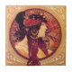 Teja de Alfonso Mucha Donna Orechini. Anuncio de la litografía. Alfonso Mucha era un amo de los anuncios de Nouveau del arte y de los posters comerciales. Donna Orechini es un retrato llamativo del perfil de una mujer que lleva un tocado pesadamente jeweled con los rubíes y los crecientes oscuros del oro. El pelo de la mujer es marrón oscuro y ella los ojos es además oscuridad. La ornamentación pesada la rodea típica del trabajo de Mucha. Un regalo hermoso para las fans de los posters de Nouveau del arte, de Alfonso Mucha, y de las impresiones del vintage.